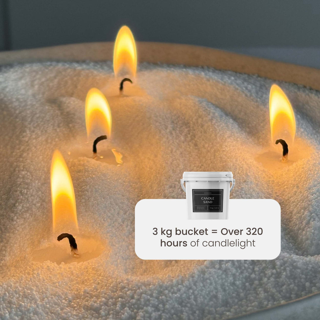 • 3kg Bucket of premium plant-based candle dust for creating pearled candles. Over 360 hours of pure candlelight (varies by use). Effortless renewal every time.