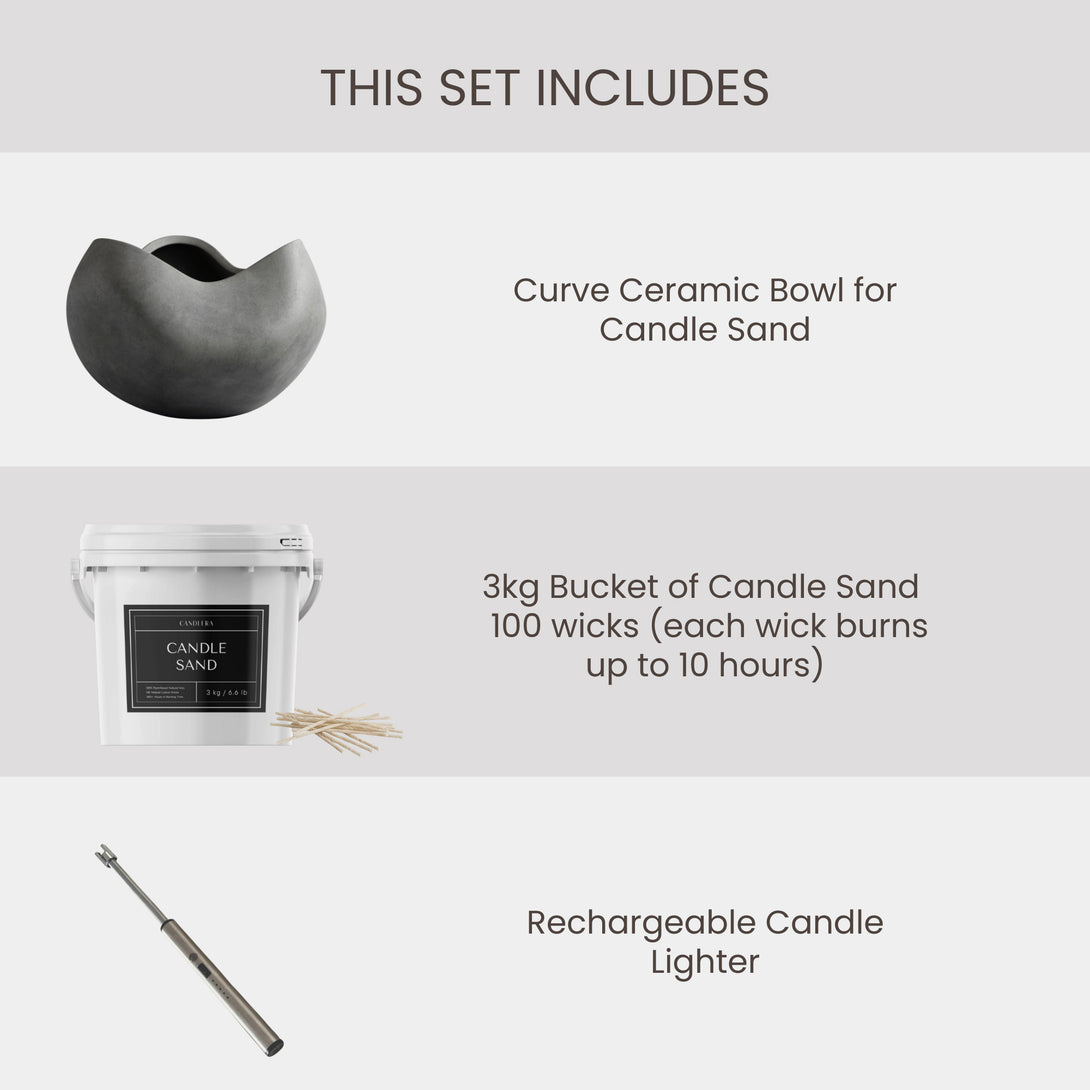 A: Each bundle is unique. The contents are carefully curated and may vary — that’s what makes each one special. You’ll always receive a mix of our most-loved Candle Sand, designer bowls, and accessories.