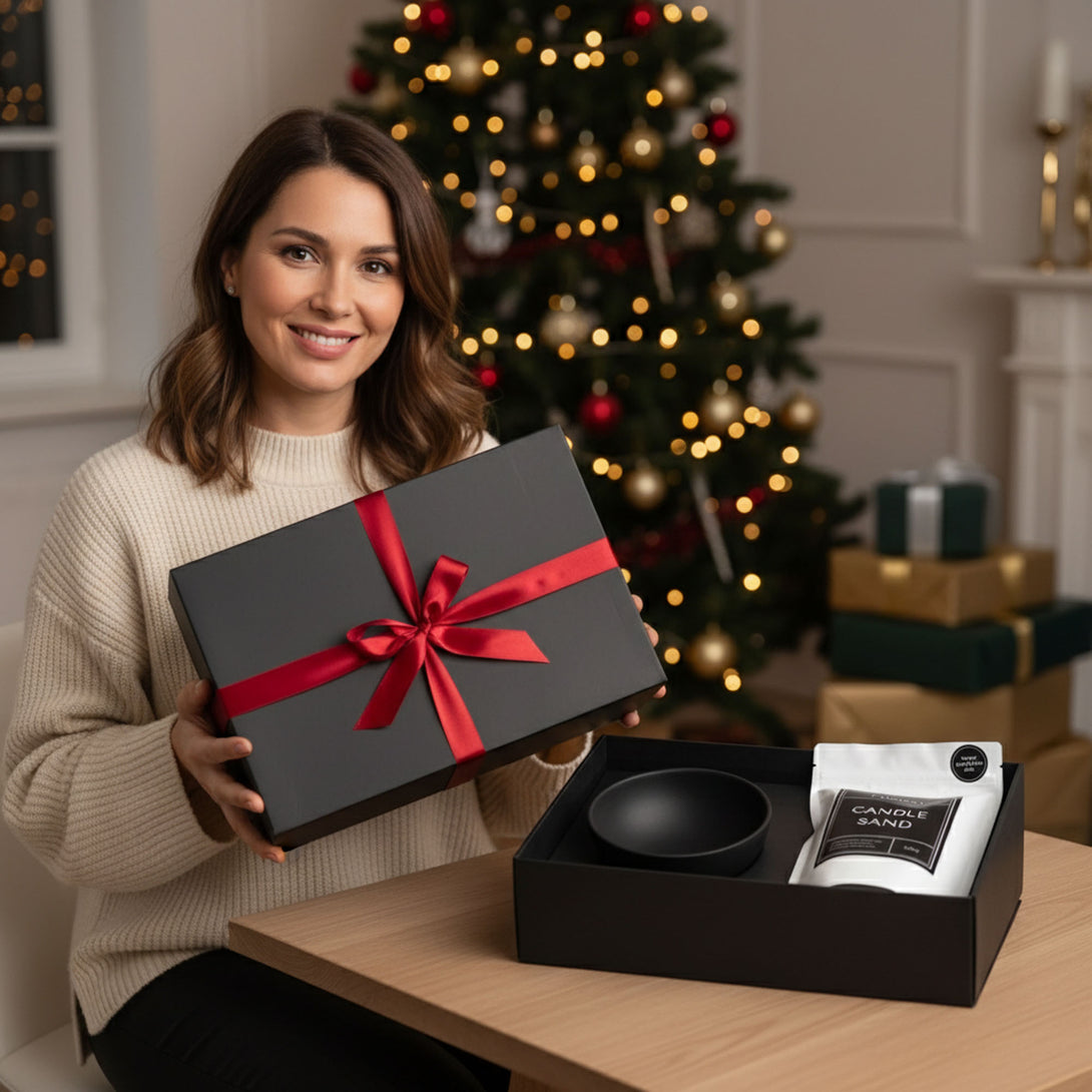 Gift More Than a Candle - Gift an Experience. This Candle Sand Gift Set includes Premium Candle Sand, 30 Natural Wicks, an Elegant Ceramic Bowl, and Luxurious Gift Packaging. Perfectly designed for candle lovers.